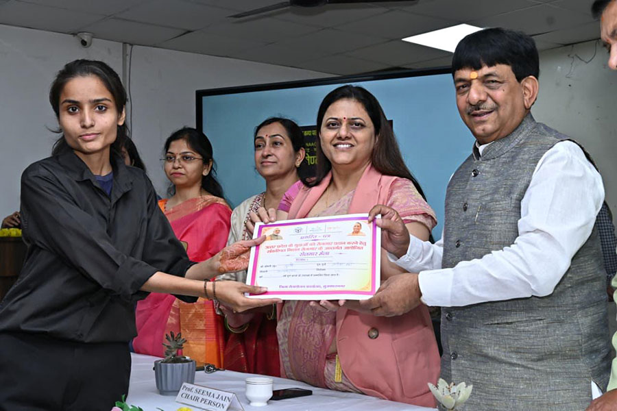 आज दिनांक 11 नवंबर 2025 को जैन कन्या पाठशाला पीजी कॉलेज मुजफ्फरनगर में सेवायोजन कार्यालय मुजफ्फरनगर एवं जैन कन्या पाठशाला पीजी कॉलेज की प्लेसमेंट सेल और पुरातन छात्रा एसोसिएशन के संयुक्त तत्वाधान में मिशन रोजगार के अंतर्गत पिंक रोजगार मेला छात्राओं के लिए आयोजित किया गया। जिसका शुभारंभ माननीय मंत्री श्री कपिल देव अग्रवाल जी द्वारा एवं प्राचार्य प्रोफेसर सीमा जैन द्वारा फीता काटकर किया गया। सर्वप्रथम सेवा योजना अधिकारी श्रीमती पारुल सिंगल ने आयोजित मेले के विषय में विशेष जानकारी देते हुए कहा कि छात्राओं को आत्मनिर्भर बनाने के उद्देश्य से माननीय मुख्यमंत्री के निर्देशानुसार इस प्रकार के मेले आयोजित किए जाते हैं ।तत्पश्चात करने कपिल देव जी ने संबोधित करते हुए कहा कि सभी छात्रों को स्किल कोर्स करने चाहिए और साक्षात्कार के लिए तैयार रहना चाहिए। महाविद्यालय प्राचार्या प्रोफेसर सीमा जैन ने संबोधित करते हुए कहा कि इस प्रकार के आयोजनों से निश्चित रूप से छात्राओं को रोजगार के नए अवसर प्रदान होंगे ।माननीय मंत्री जी द्वारा गत वर्षो में महाविद्यालय से कैंपस सिलेक्शन छात्रों को जो की विभिन्न कंपनियों में कार्यरत हैं प्रशस्ति पत्र प्रदान किए गए। प्रशस्ति पत्र प्रदान करने वालों में कुमारी काजल, कुमारी शिफा, कुमारी पिंकी आदि सम्मिलित थी। रोजगार मेले में लगभग ६५३छात्राओं ने अपना पंजीकरण कराया तथा ४२५ छात्रों को चयनित किया गया कार्यक्रम का संचालन प्लेसमेंट सेल की संयोजिका डॉक्टर सविता वशिष्ठ एवं सह संयोजिका डॉ मनीषा अग्रवाल ने किया। कार्यक्रम को सफल बनाने में सह सेवा योजना अधिकारी डॉक्टर सोनाली सिंह प्रोफेसर आभा सैनी, प्रोफेसर संतोष कुमारी, प्रोफेसर वंदना वर्मा, डॉक्टर सोनाली सिंह, डॉक्टर वर्चसा सैनी, डॉ अक्षय कुमार जैन, कुमारी अंजली शर्मा एवं संपूर्ण महाविद्यालय परिवार का सहयोग रहा।