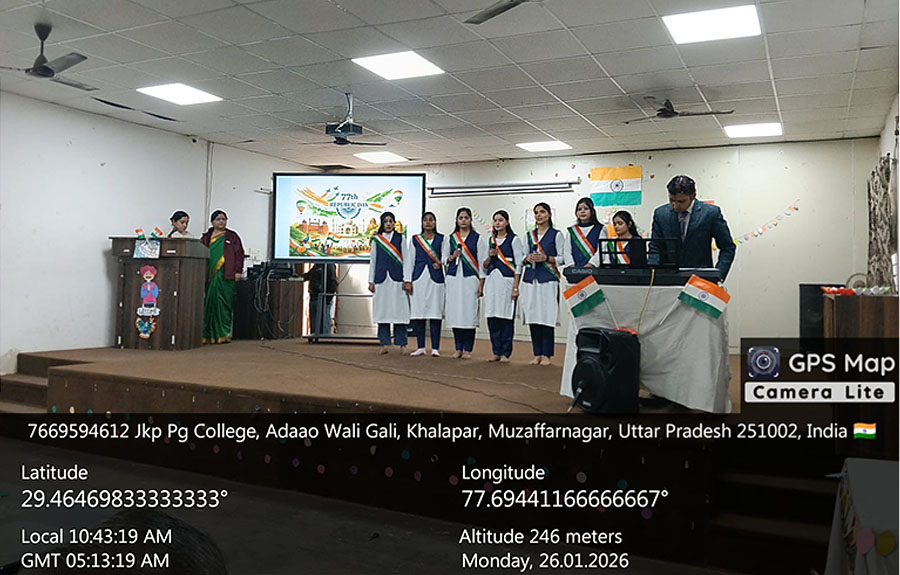 On the auspicious morning of 26th January 2026,our college JKPPG college,Muzaffarnagar celebrated 77th Republic Day in the college premises. It was the matter of great pride for all of us. The students presented cultural items including patriotic songs, folk dances and speeches.